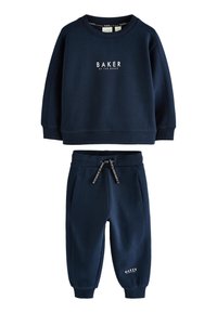 Heleda roheline kapuutsiga särk, millel on "BAKER" logo, koos sobivate spordipükstega, kus on nöörikinnitus ja küljetaskud. Sile kangastekstuuri.