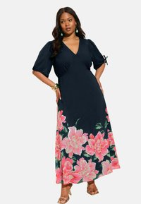 PLUS SIZE FIT - SHORT SLEEVE EMBELLISHED MIDI DRESS . - Maksikleit - navy floral
