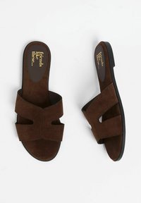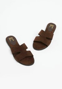 REGULAR FIT - COMFORT MULE CASUAL FLAT SANDALS FIT . - Tagant lahtised kingad - faux suede chocolate brown