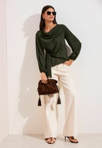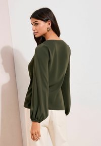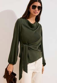REGULAR FIT - LONG SLEEVE TIE SIDE COWL - Pluus - khaki green
