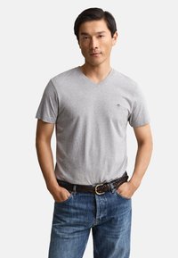 SHIELD V NECK - Lihtne T-särk - grey melange