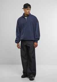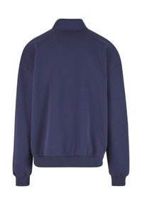 Tumesinine pullover-treeningdress koos kõrge krae, pooleldi tõmblukuga ja ees taskutega. Rinnal on peen tikandiga logo.
