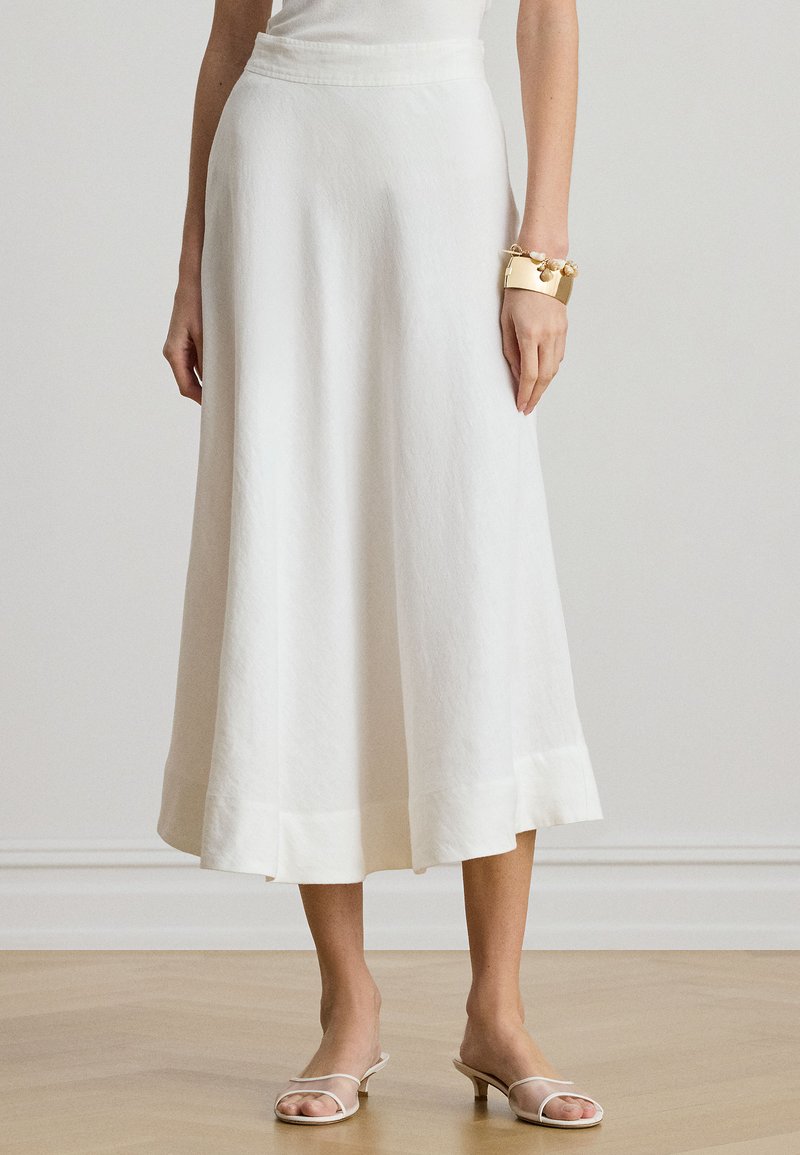 LINEN A-LINE MIDI SKIRT - A-lõikeline seelik - white