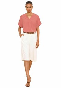 REGULAR FIT - UTILITY V-NECK SHORT ROLL SLEEVE TOP . - Pluus - white