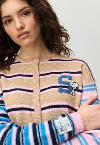 SNOOPY CREW NECK - Kardigan - multi camel brown pink stripe