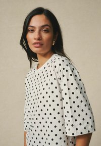 RELAXED BOXY ELBOW LENGTH CREW NECK - Lihtne T-särk - white black polka dot