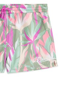 Ujumispüksid troopilise mustriga, mis sisaldab rohelisi, roosasid ja kollaseid toone. Elastne vöökoht paelaga. Valge O'Neilli logo.