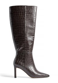 SQUARED TOE CROC PATTERN - Üle põlve saapad - dk brown