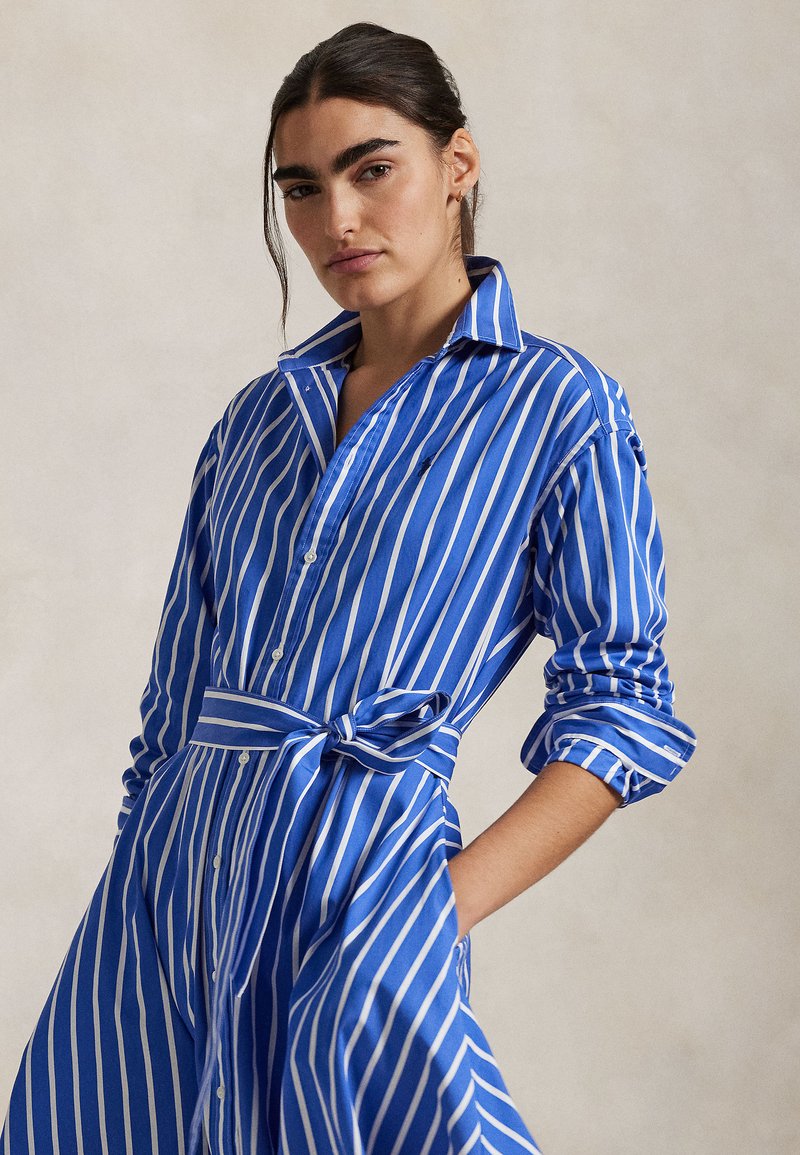 BELTED WIDE-STRIPE COTTON SHIRTDRESS - Särkkleit - blue/white