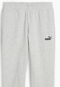 Helehallid Puma dressipüksid elastse vöökohaga ja must Puma logo ülemisel vasakul reiel, paigutatud lamedalt.
