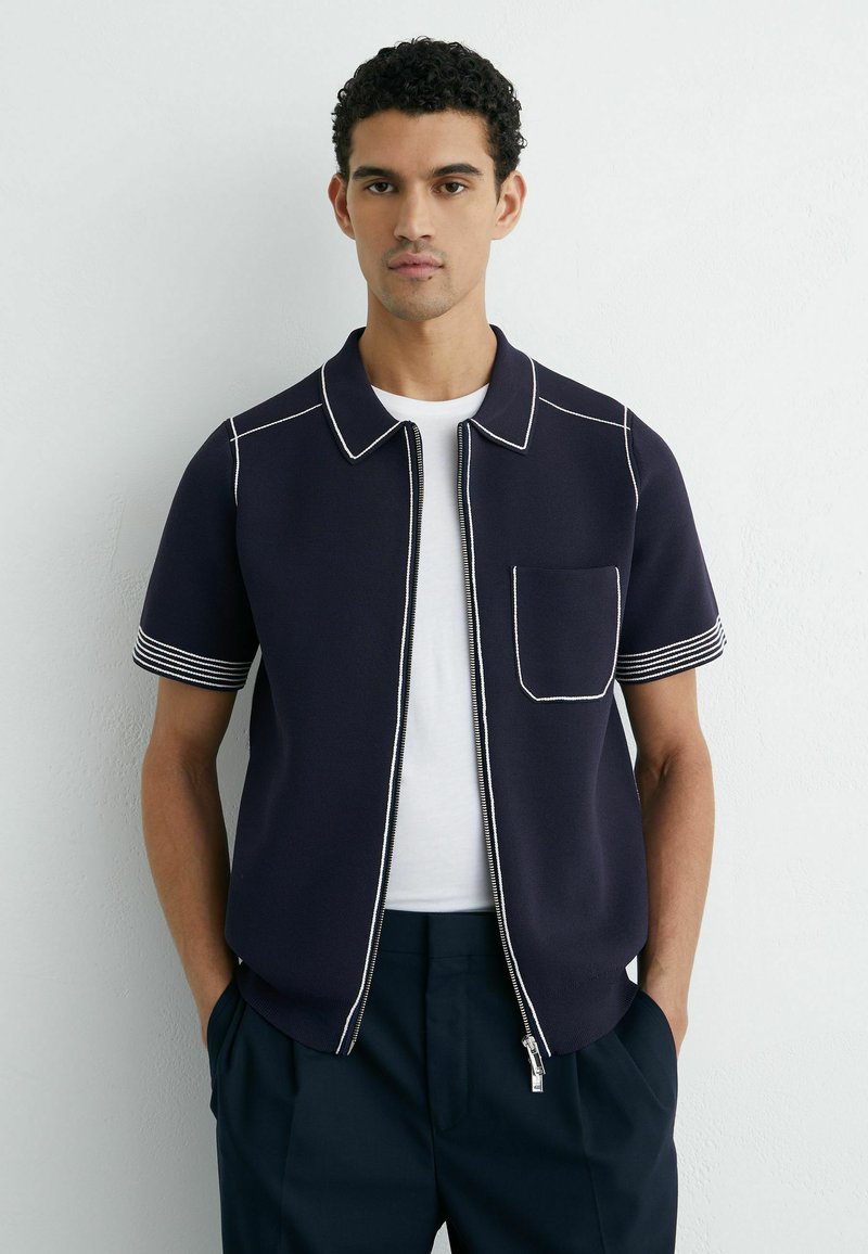 REGULAR FIT - BLAKE STITCH-DETAIL ZIP-THROUGH - Kardigan - navy