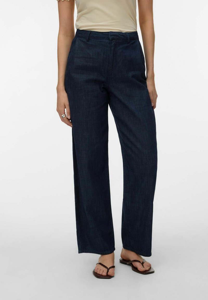 HOSE VMZELDA HOHE TAILLE HOSE - Wide leg - dark blue denim