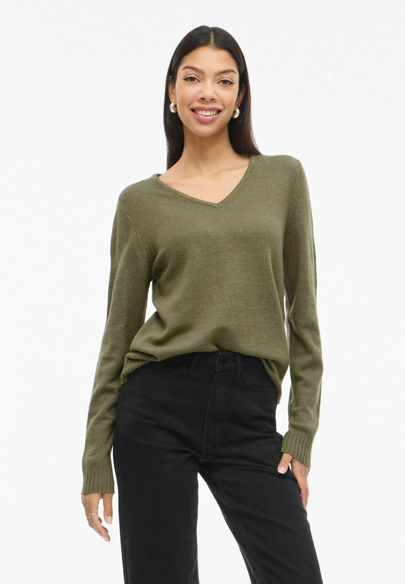 VIRIL V-NECK L/S - Džemper - olivine