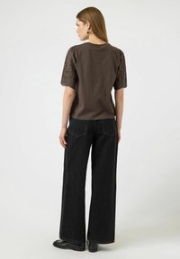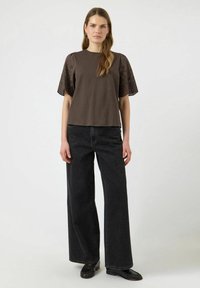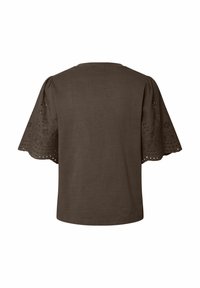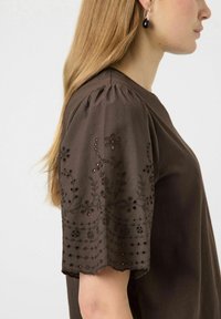 YASLEX SS TOP W. EMB SLEEVES S. NOOS - Trükipildiga T-särk - chocolate brown